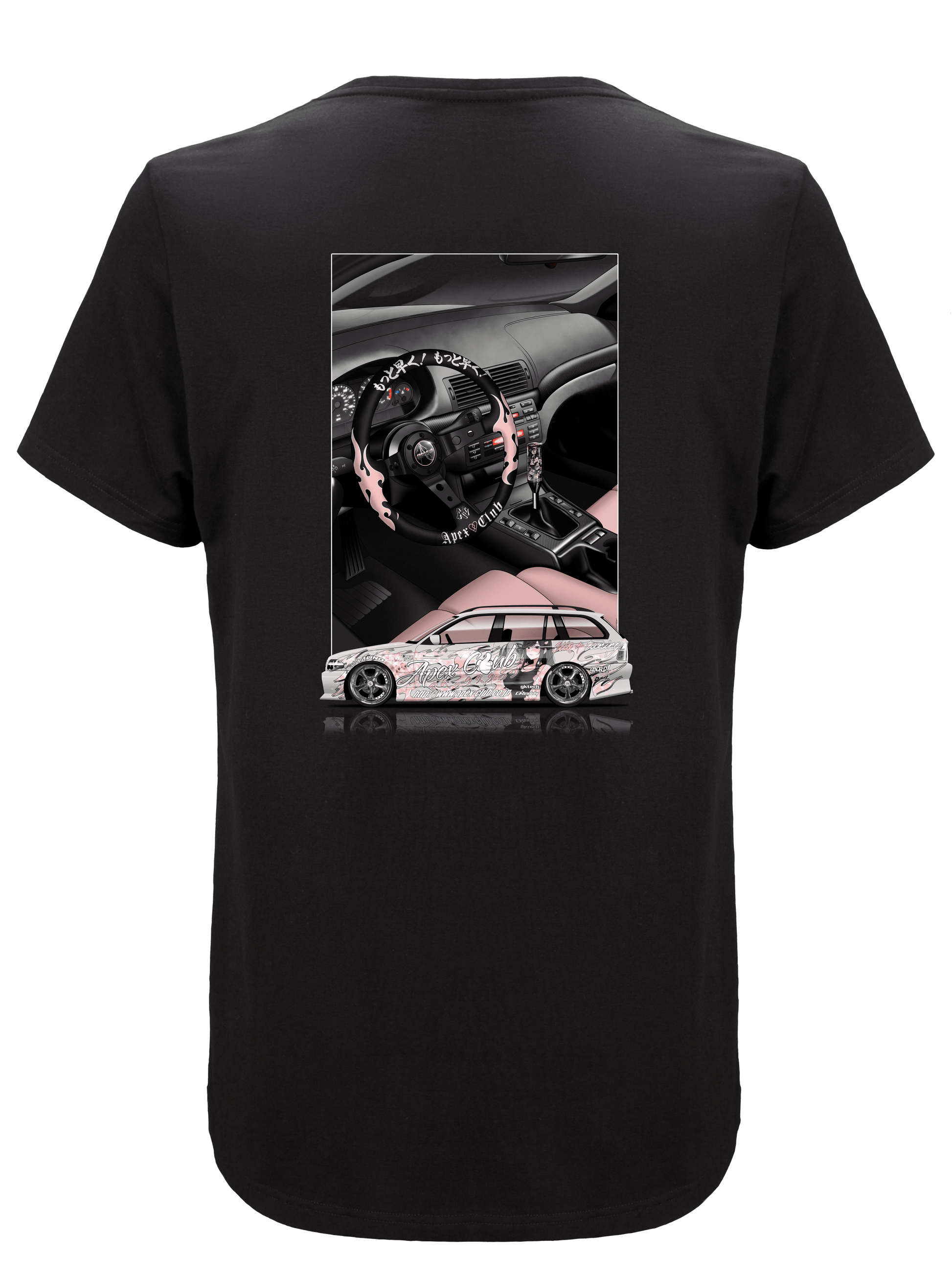 The Team E46 Tee delivers the ultimate blend of comfort, style, and durability, now featuring a striking design of the Apex Club's Team E46 Touring. Made from 100% USA-grown ringspun cotton, this pre-shrunk tee holds its shape wash after wash. Showcasing a bold livery and a beautifully detailed illustration of the timeless E46 interior, this shirt is perfect for enthusiasts who appreciate both racing heritage and precision design. With superior printability and a modern, clean fit, it’s your go-to choice for everyday wear.